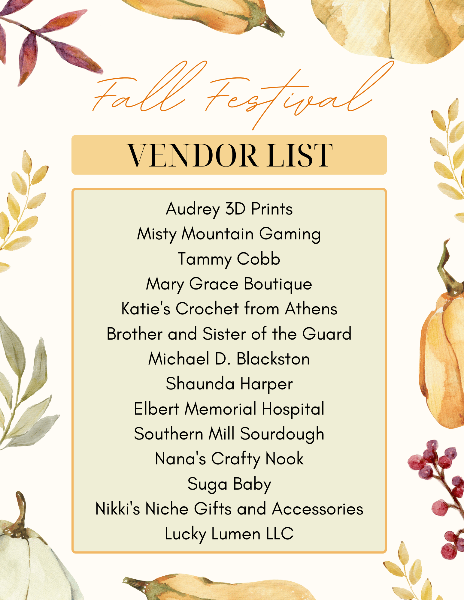See below for the vendor lists and schedule for this year's event. Get PUMPED for OVER 50 VENDORS, a bouncy house with train, dunking booth, live music, petting zoo, dancing, games, cakewalk, food & drink, and more THIS Saturday, September 20th at the Bowman Community Park! The vendor market will be from 9am to 5pm, with live music continuing until 9pm.